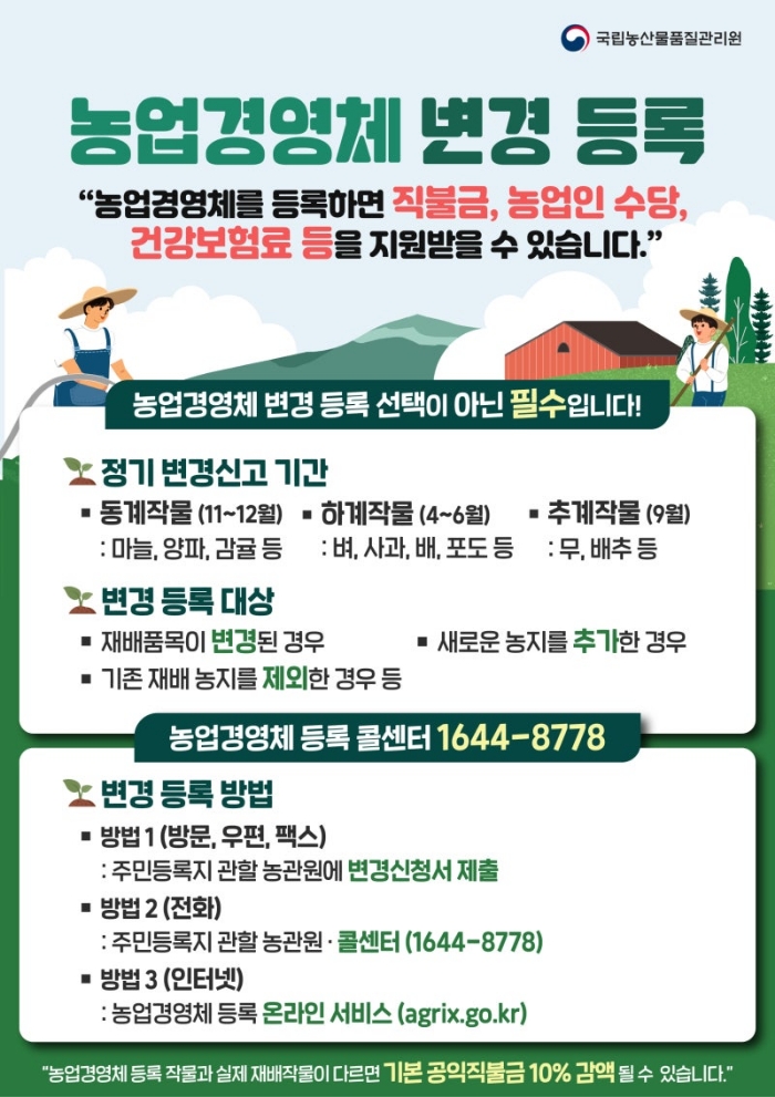 2025년 농업경영체 정기 변경신고 안내|등록·변경 방법부터 콜센터까지 한 눈에