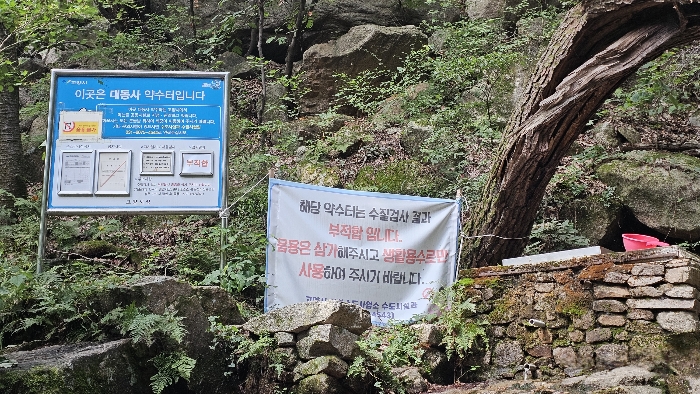 원효봉을 지나 대동사 약수터 — 머리 감고 세수,