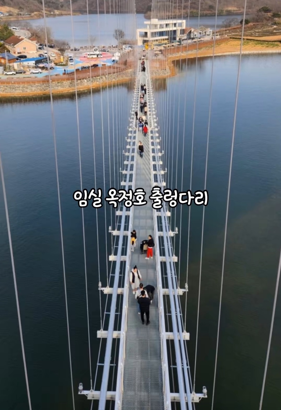 출렁다리에서 찍는 호수 뷰가 기가 막힙니다.