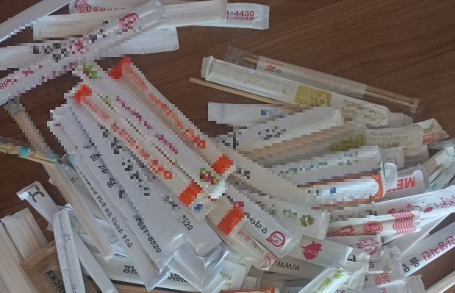 ✔ 깨끗해 보이더라도 나무젖가락 재활용은 절대 하지 않는다.