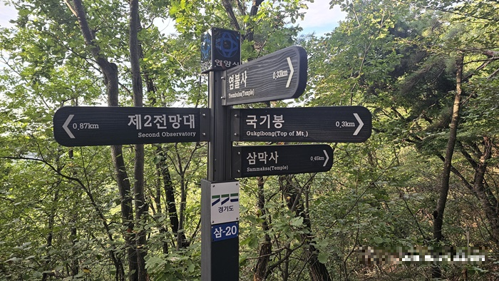 우여곡절 끝에 이정표(제2전망대, 삼막사, 염불사)가 있는 갈림에 도착하여