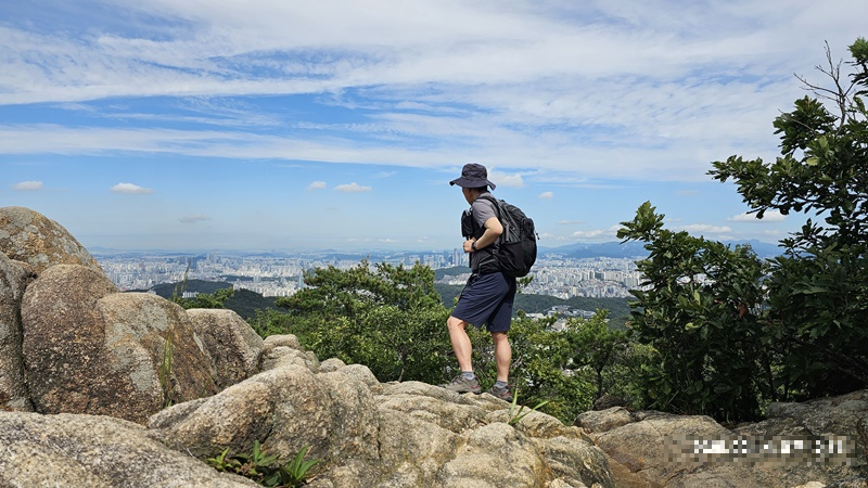 연주대 정상에 올라 바위에 앉아 땀을 식히며 바라본 서울 풍경,