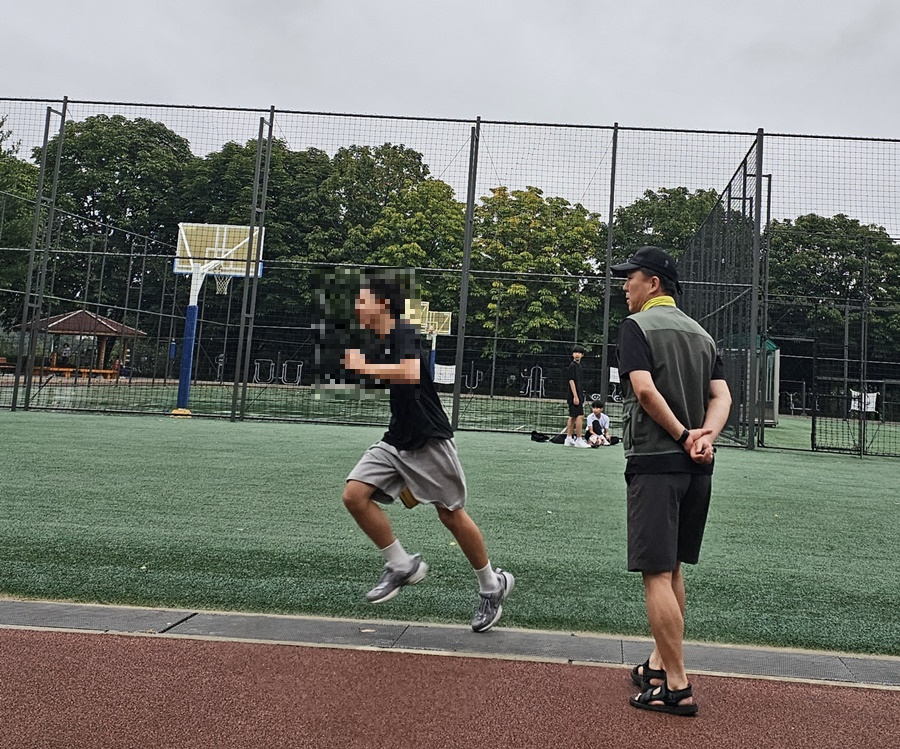 그런데 신기하게도, 운동하러 나온 사람들이 꽤 많네요. 비를 피하기보다 함께 즐기는 모습이 보기 좋습니다.