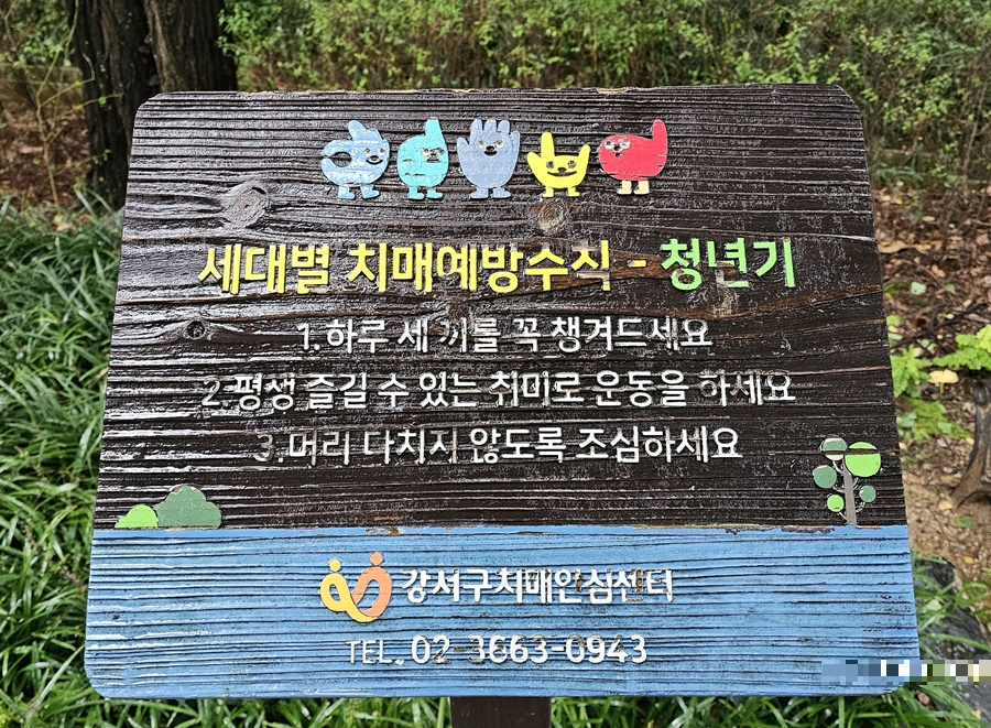 산책로에 세워진 세대별 치매 예방 수칙, 안내 표지판을 유심히 살펴보았습니다.