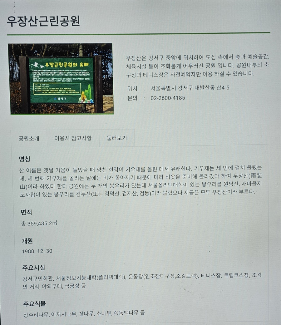 🌱우장산 근린공원에 대한 한마디