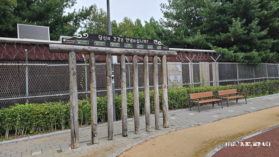 우장산 근린공원 정상에서 하산하다 보면, 좌측 방향에 맨발로 걷는 황톳길도 잘 갖추어 있었습니다.
