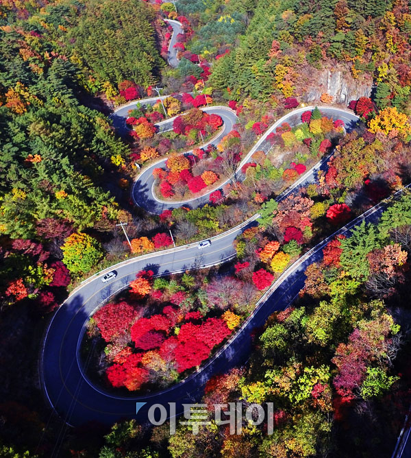 특징: 구비구비 이어진 단풍길 위, 12구비의 말티 고개 전망대는 환상적인 단풍 드라이브 코스로 손색이 없습니다.