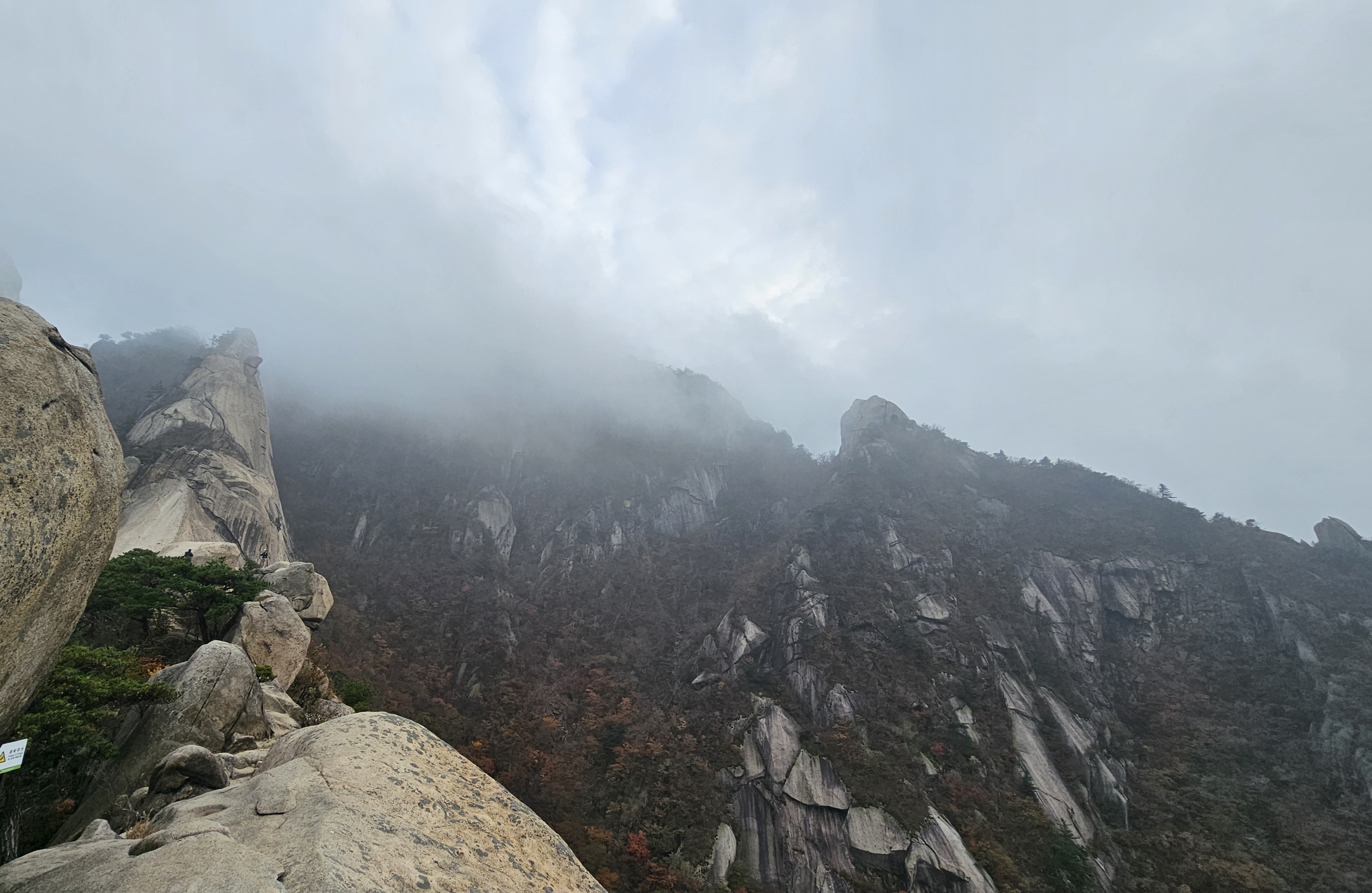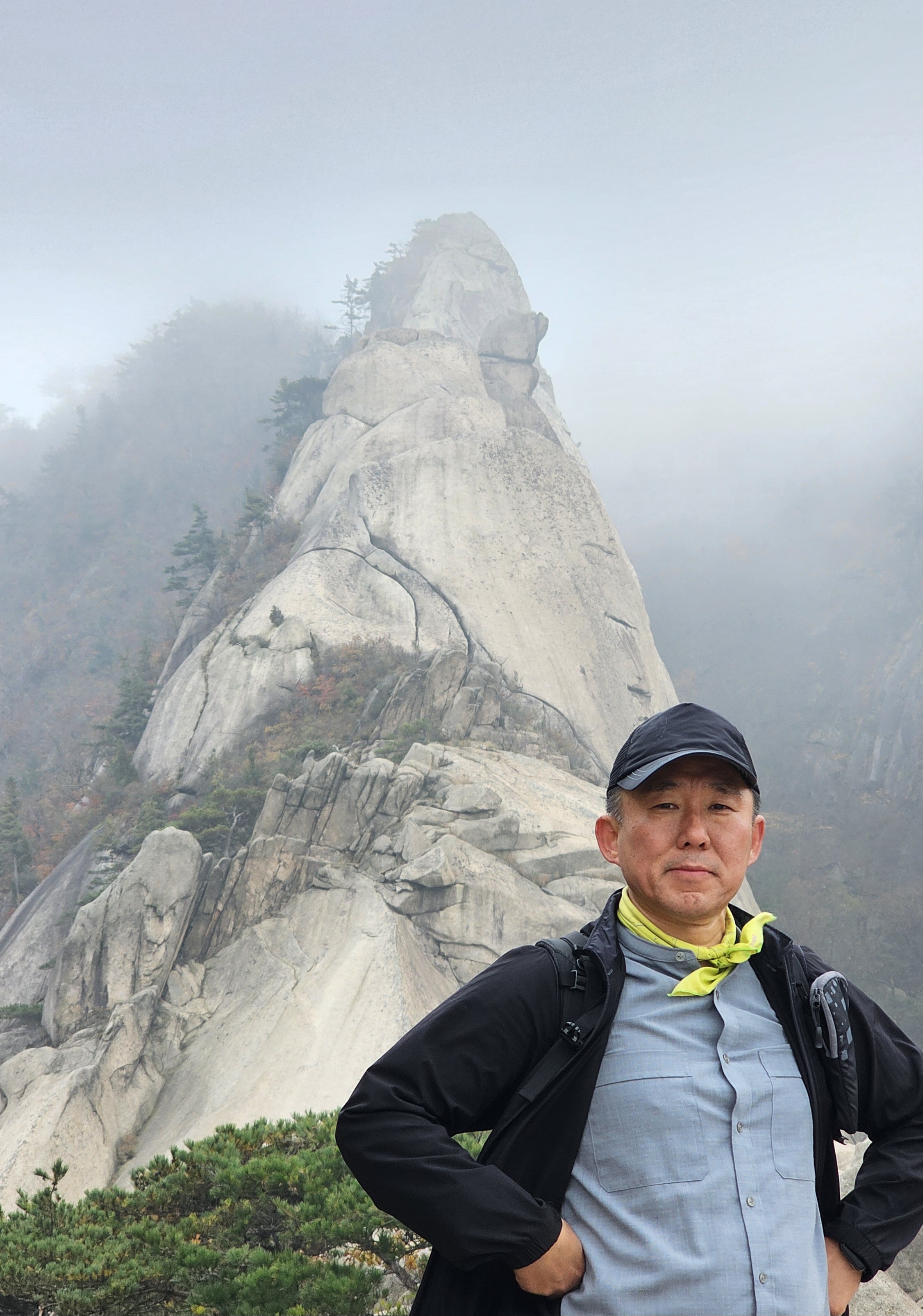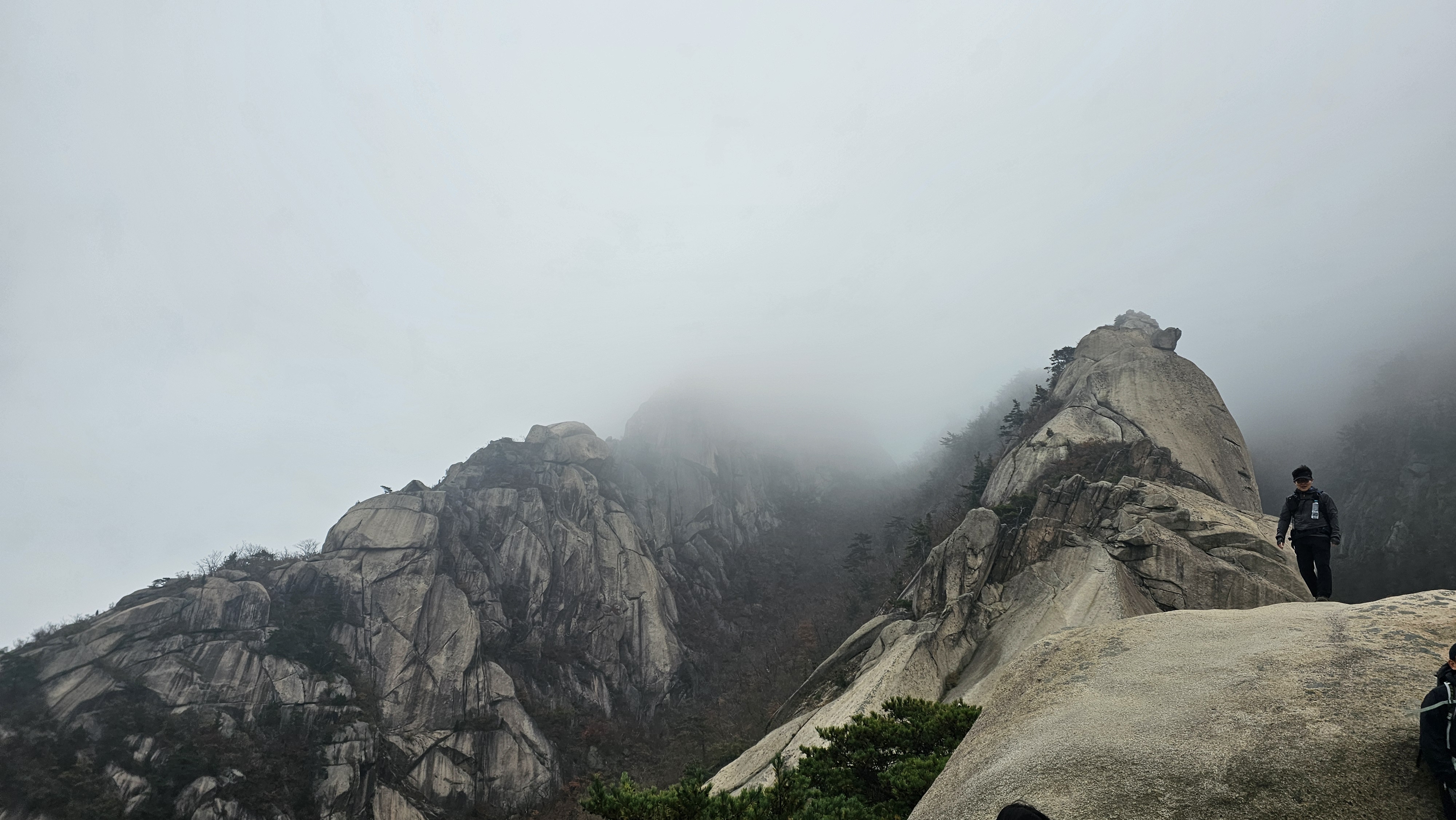 천천히 숨은벽 능선을 걸으며, 쉬며 놀며, 운무 속 웅장한 경치를 감상했습니다.