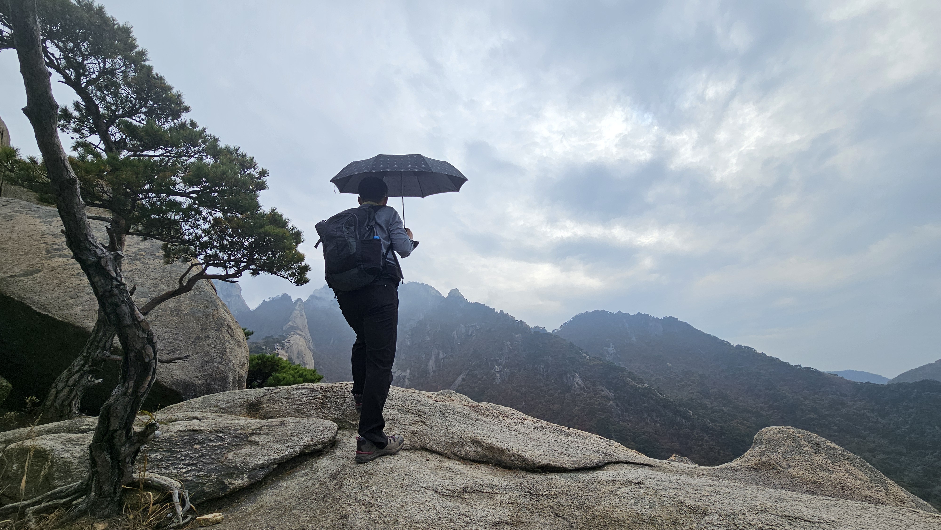 가랑비를 즐기며 저마다 조용히 단풍길을 오르는 사람들, 그 뒷모습이 참 평화로워 보였습니다.