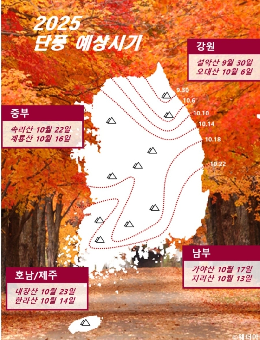 요즘은 ‘단풍 지도’도 잘 나와 있어서 산행 계획 세우실 때 한 번 참고해 보시면 좋을 것 같아 올려 봅니다.