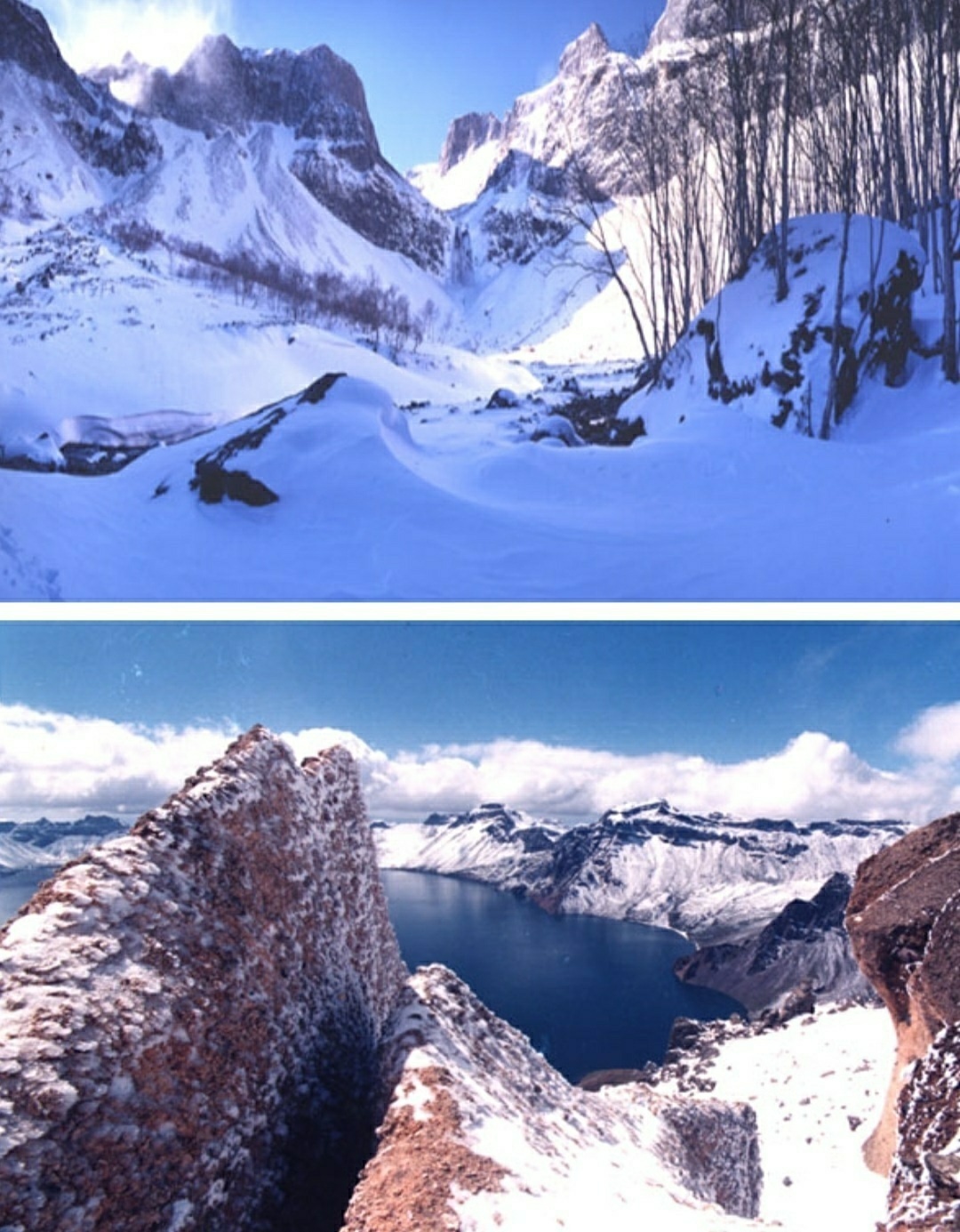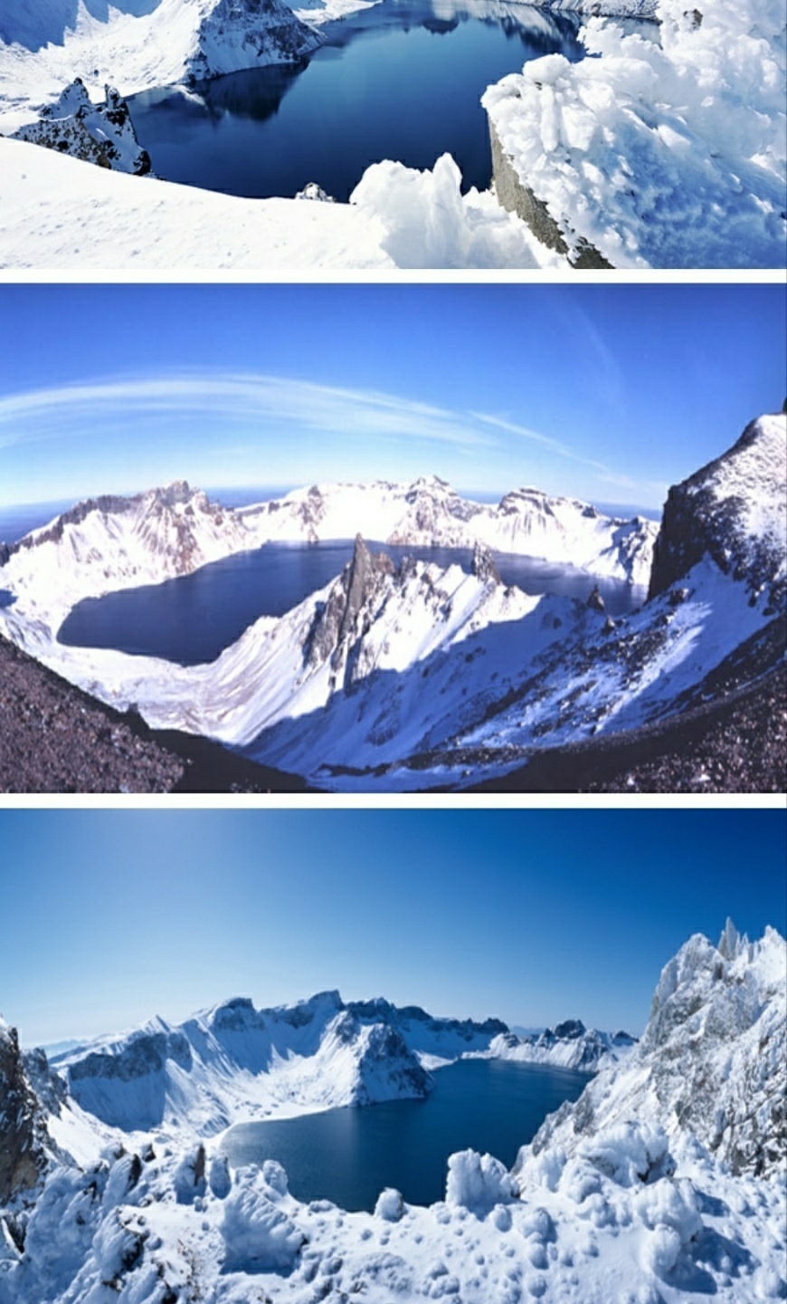 선배님이 보내주신 첫 사진은 하얗게 눈 덮인 천지였습니다.