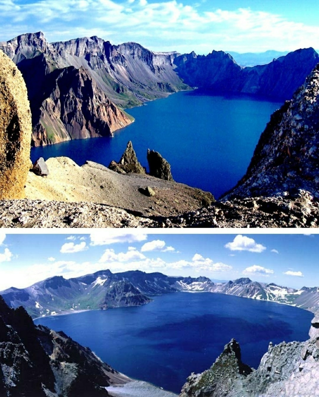 백두산 높이, 천지, 지질, 호랑이, 화산 폭발 - 인공위성 아리랑호에서 찍은 사진