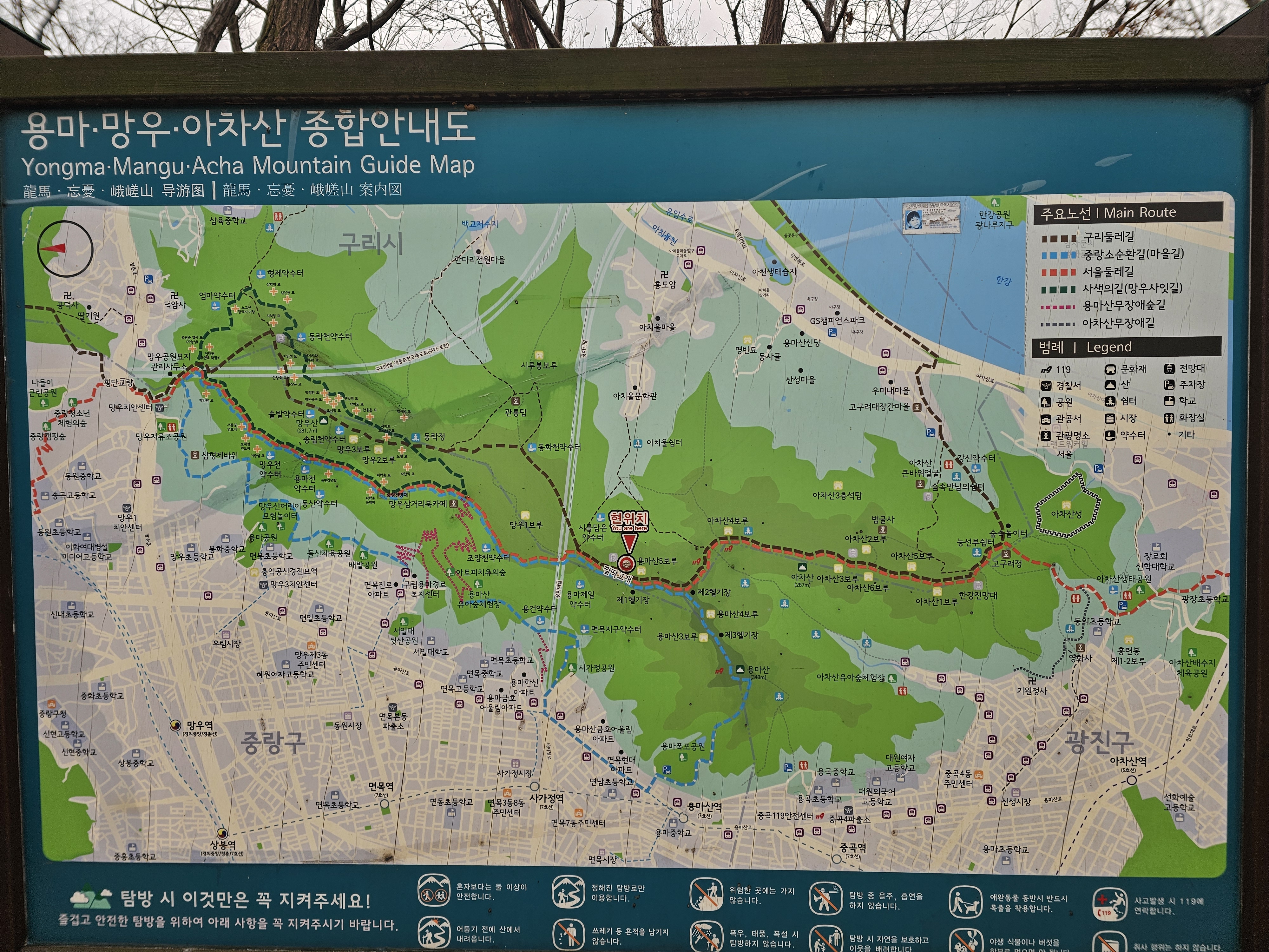 🌱 용마산·망우산·아차산 등산 지도입니다.