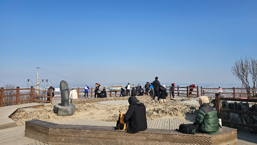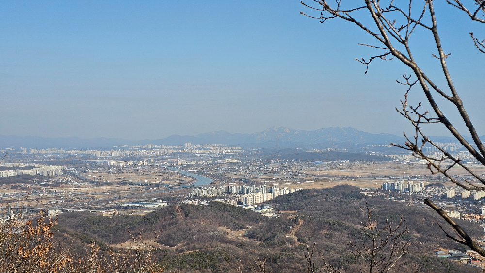 산 아래로는 아파트 단지와 김포공항 활주로까지 한눈에 들어옵니다.