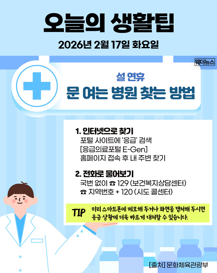 설 명절 연휴 기간 동안 혹시 모를 응급 상황에 대비하여