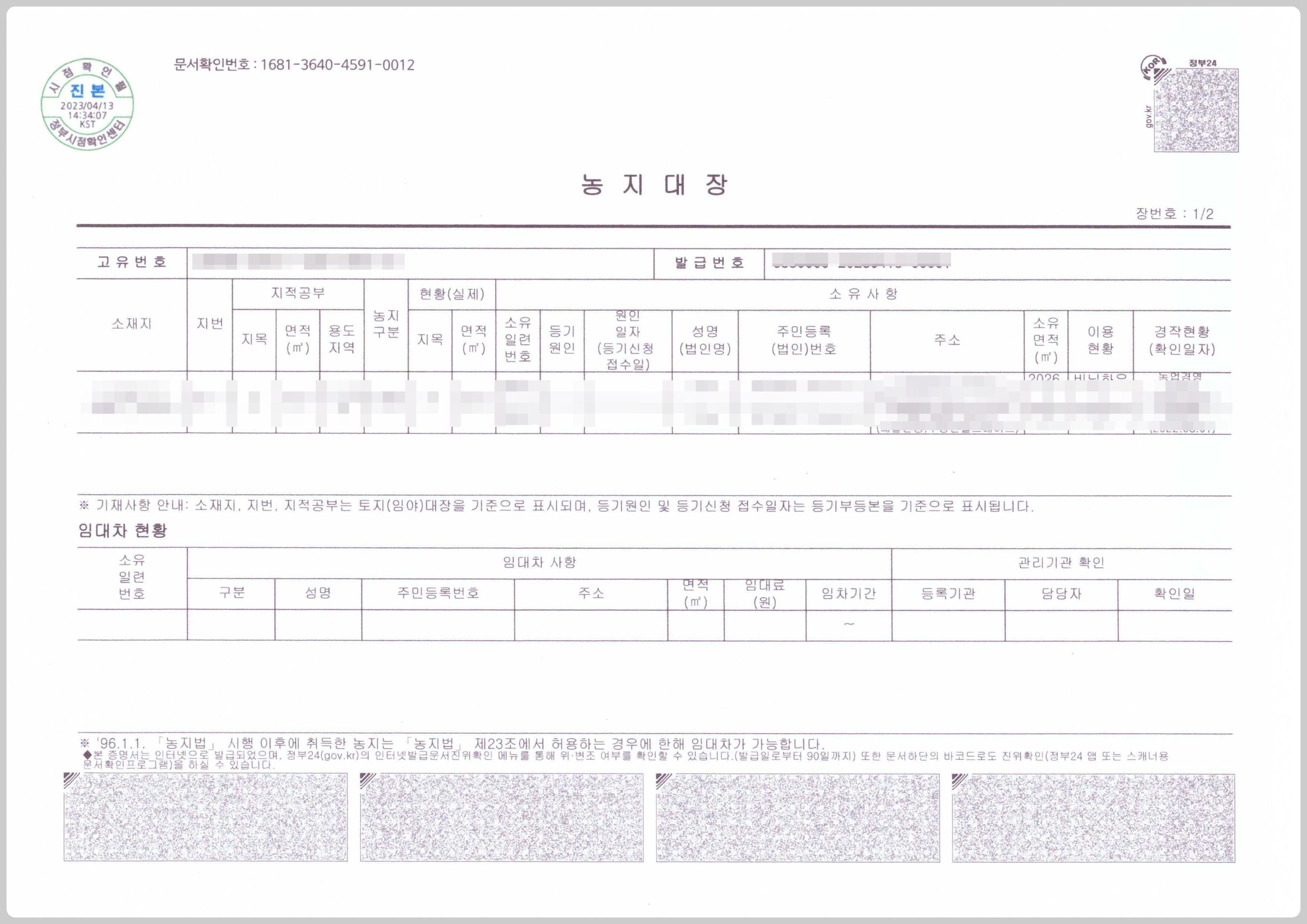 하지만 농지대장은 농지의 공식 신분증입니다. 땅을 소유하거나 빌려서 경작하는 분이라면 꼭 한 번은 들여다보고, 정확하게 관리할 필요가 있습니다.