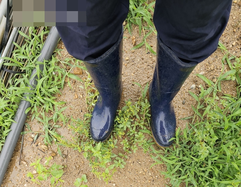 장화도 축축하고, 옷은 이미