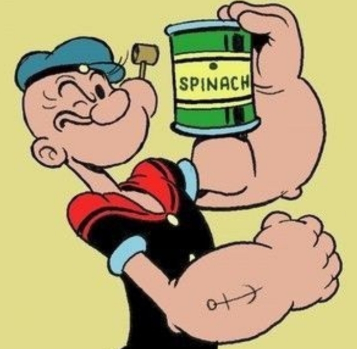 시금치를 한 깡통 먹으면 알통이 불끈 솟아올라 힘이 나고, 나쁜 사람들을 혼내주던 만화영화 였습니다.