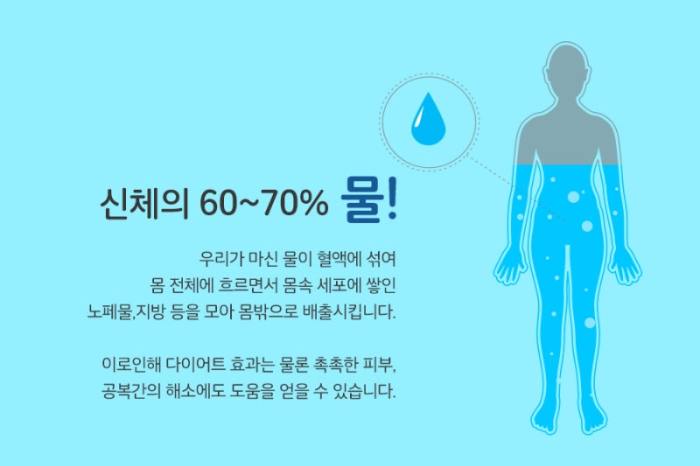 성인의 경우 몸의 약 60~70%가 물로 되어 있습니다.