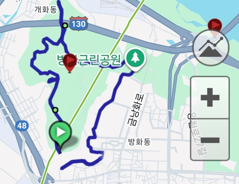 저도 오늘은 개화산역에서 출발해 미타사 – 호국공원 – 신선대바위 – 봉화대 – 개화산 전망대 – 약사사 – 방화근린공원으로 내려오는 코스를 다녀왔습니다.