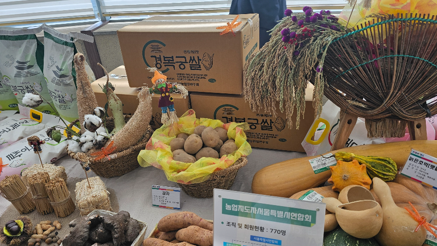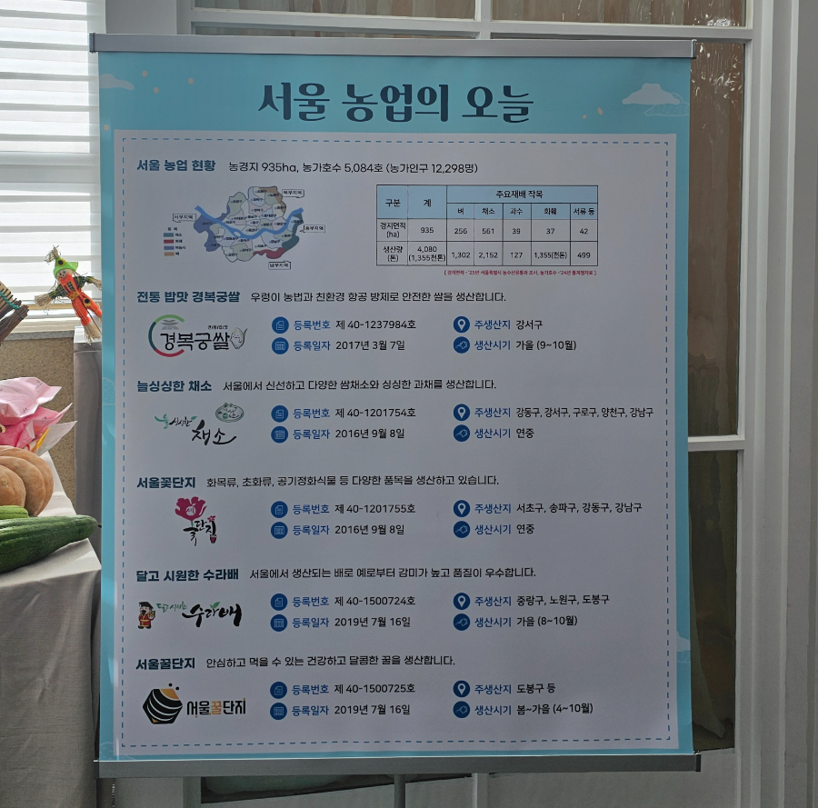 양재동 AT센터에 도착하니 그랜드홀 로비에 서울시 우수 농산물이 전시되어 있었고, 그 풍경이 참 자랑스러웠습니다.