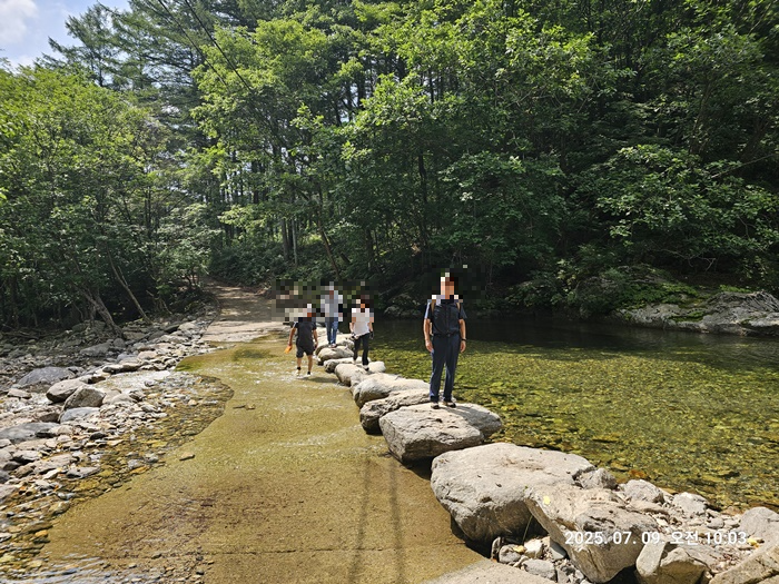 저는 선두그룹에서 회원분들과 함께 계곡길 따라 트래킹도 하고,